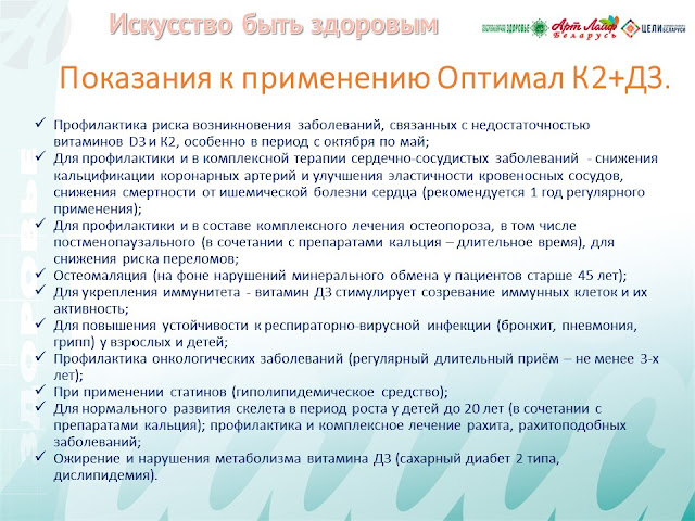 сочетать приём БАД «Оптимал К2+Д3 (Optimal К2+D3)» с адекватным потреблением